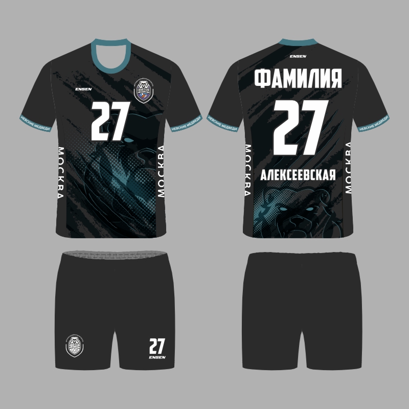 Ваша спортивная форма, созданная в современном стиле школы "НЕВСКИЕ МЕДВЕДИ" разработана и изготовлена известным российским производителем ENSEN - основным поставщиком игровой формы для команд Российской  волейбольной Суперлиги.