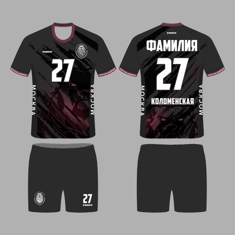 Ваша спортивная форма, созданная в современном стиле школы "НЕВСКИЕ МЕДВЕДИ" разработана и изготовлена известным российским производителем ENSEN - основным поставщиком игровой формы для команд Российской  волейбольной Суперлиги.