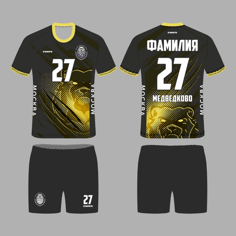 Ваша спортивная форма, созданная в современном стиле школы "НЕВСКИЕ МЕДВЕДИ" разработана и изготовлена известным российским производителем ENSEN - основным поставщиком игровой формы для команд Российской  волейбольной Суперлиги.