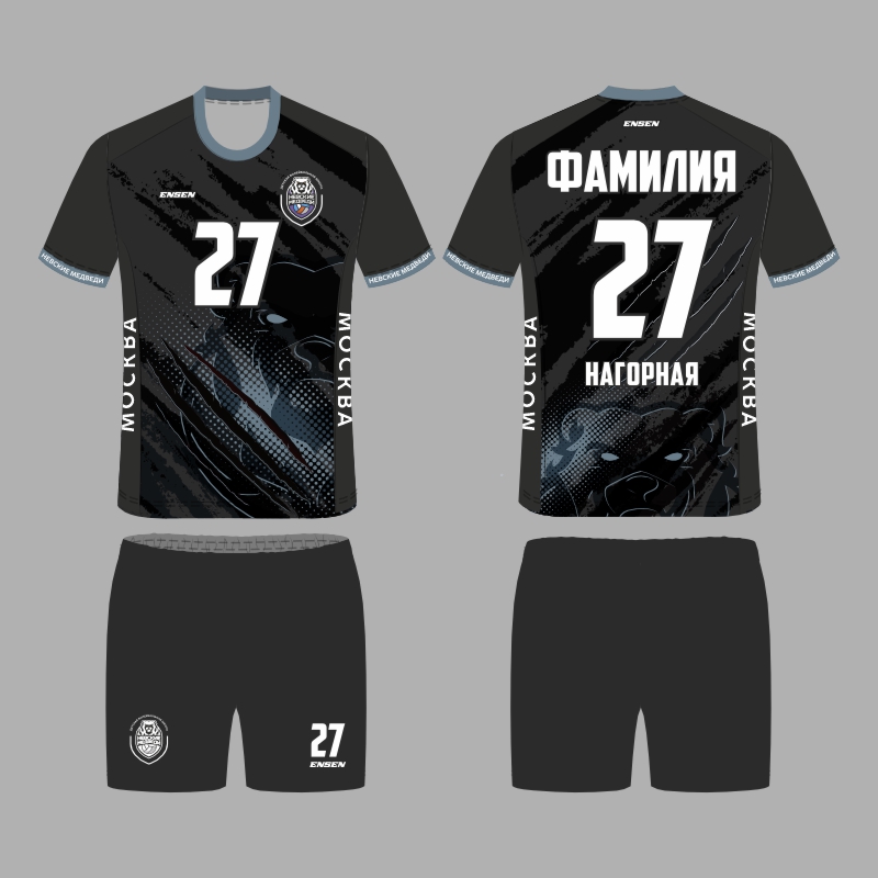 Ваша спортивная форма, созданная в современном стиле школы "НЕВСКИЕ МЕДВЕДИ" разработана и изготовлена известным российским производителем ENSEN - основным поставщиком игровой формы для команд Российской  волейбольной Суперлиги.