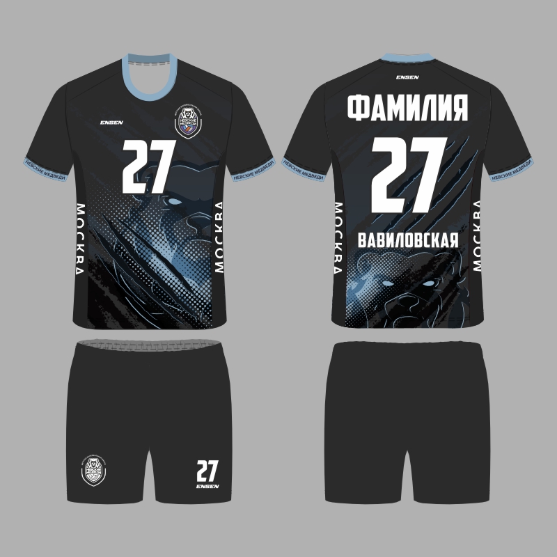 Ваша спортивная форма, созданная в современном стиле школы "НЕВСКИЕ МЕДВЕДИ" разработана и изготовлена известным российским производителем ENSEN - основным поставщиком игровой формы для команд Российской  волейбольной Суперлиги.