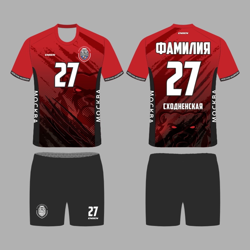 Ваша спортивная форма, созданная в современном стиле школы "НЕВСКИЕ МЕДВЕДИ" разработана и изготовлена известным российским производителем ENSEN - основным поставщиком игровой формы для команд Российской  волейбольной Суперлиги.