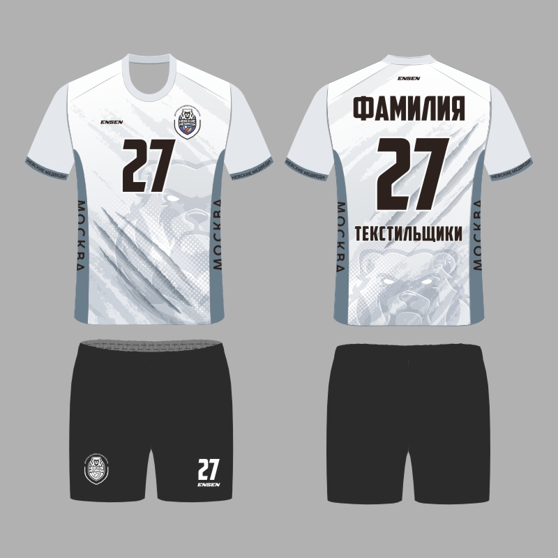 Ваша спортивная форма, созданная в современном стиле школы "НЕВСКИЕ МЕДВЕДИ" разработана и изготовлена известным российским производителем ENSEN - основным поставщиком игровой формы для команд Российской  волейбольной Суперлиги.