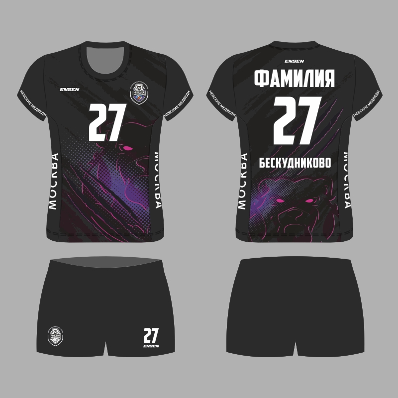 Ваша спортивная форма, созданная в современном стиле школы "НЕВСКИЕ МЕДВЕДИ" разработана и изготовлена известным российским производителем ENSEN - основным поставщиком игровой формы для команд Российской  волейбольной Суперлиги.