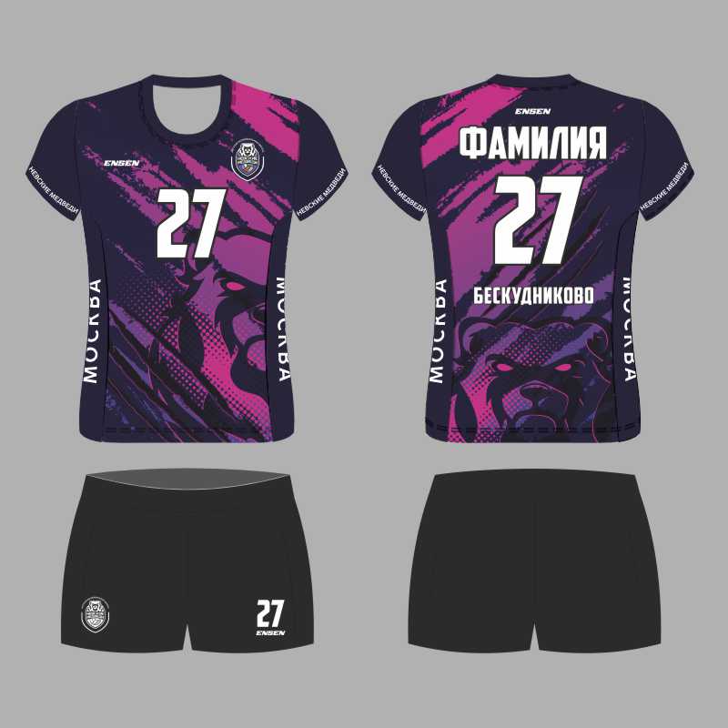 Ваша спортивная форма, созданная в современном стиле школы "НЕВСКИЕ МЕДВЕДИ" разработана и изготовлена известным российским производителем ENSEN - основным поставщиком игровой формы для команд Российской  волейбольной Суперлиги.
