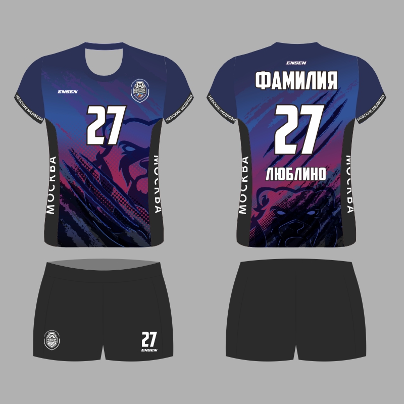 Ваша спортивная форма, созданная в современном стиле школы "НЕВСКИЕ МЕДВЕДИ" разработана и изготовлена известным российским производителем ENSEN - основным поставщиком игровой формы для команд Российской  волейбольной Суперлиги.