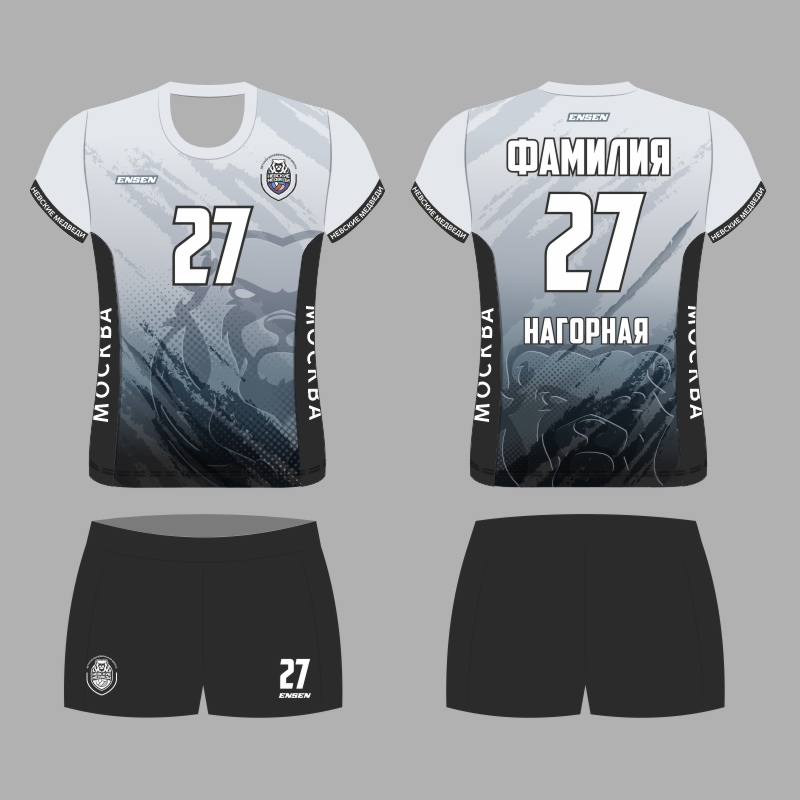 Ваша спортивная форма, созданная в современном стиле школы "НЕВСКИЕ МЕДВЕДИ" разработана и изготовлена известным российским производителем ENSEN - основным поставщиком игровой формы для команд Российской  волейбольной Суперлиги.