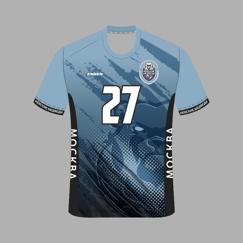 Ваша спортивная форма, созданная в современном стиле школы "НЕВСКИЕ МЕДВЕДИ" разработана и изготовлена известным российским производителем ENSEN - основным поставщиком игровой формы для команд Российской  волейбольной Суперлиги.