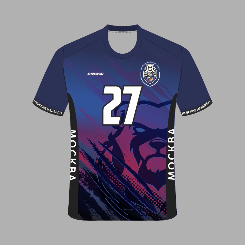 Ваша спортивная форма, созданная в современном стиле школы "НЕВСКИЕ МЕДВЕДИ" разработана и изготовлена известным российским производителем ENSEN - основным поставщиком игровой формы для команд Российской  волейбольной Суперлиги.