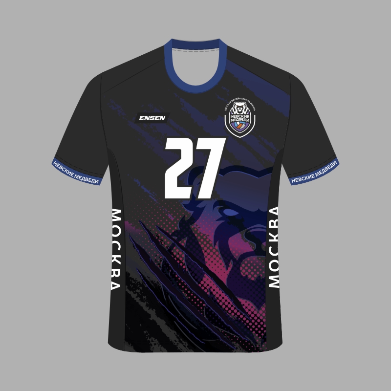 Ваша спортивная форма, созданная в современном стиле школы "НЕВСКИЕ МЕДВЕДИ" разработана и изготовлена известным российским производителем ENSEN - основным поставщиком игровой формы для команд Российской  волейбольной Суперлиги.